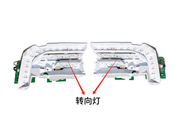A vehicular turn signal device that activates during turning or lane-changing maneuvers, providing visual warnings to following vehicles and pedestrians regarding the vehicle's intended direction of travel.