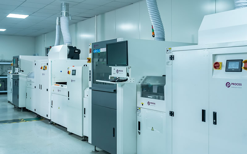 A 600m² UV spray coating cleanroom; Equipped with multiple automated UV coating lines.
